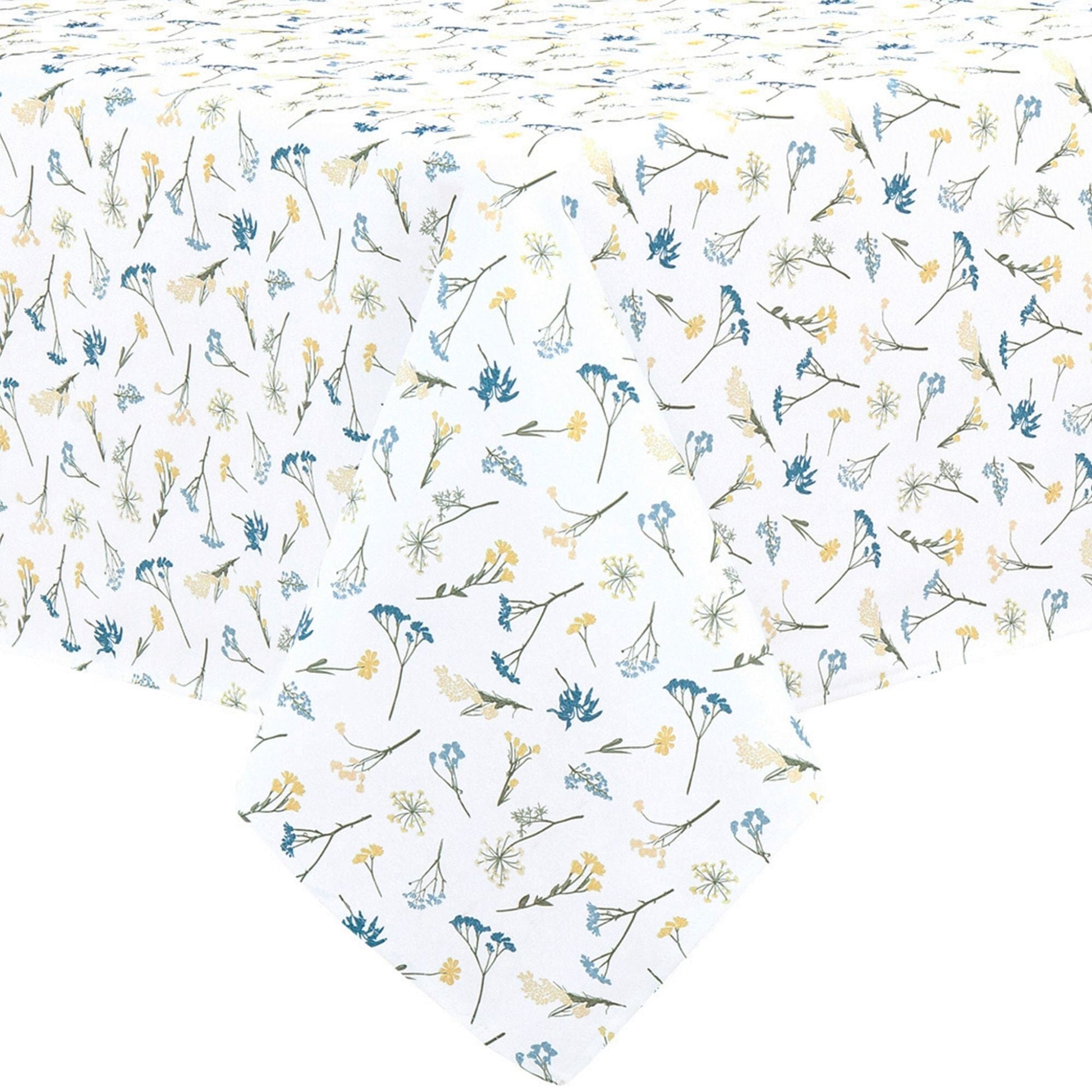 Bring the beauty of nature indoors with the Lenox Wildflowers All-Over Tablecloth. Featuring a charming all-over print of yellow, blue and green wildflowers scattered across a soft white ground, this cheerful tablecloth offers the perfect backdrop to any gathering.
