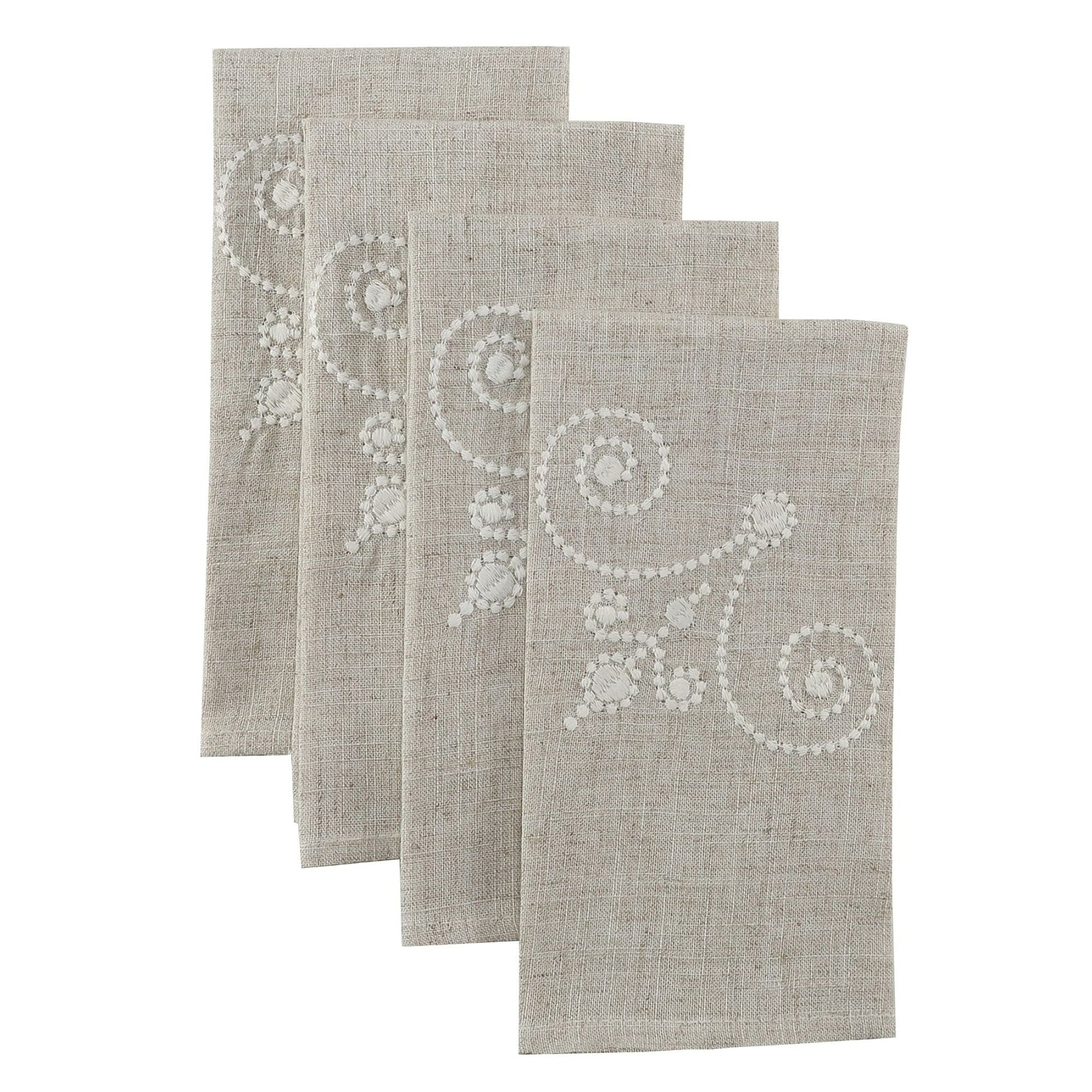 Add a touch of French country elegance to your table with the Lenox French Perle Embroidered Set of 4 Napkins. Inspired by the charm of the French countryside, each cloth napkin features delicate white scroll and swirl embroidery on a linen-colored base that brings refined beauty to any setting—perfect for both everyday dining and special occasions. Crafted from a soft yet durable 80% polyester and 20% linen blend, these reusable dining napkins offer the natural look and feel of linen with the easy care and resilience of polyester. Their classic design pairs beautifully with the matching tablecloths, runners, placemats, and French Perle Lenox dinnerware to create a cohesive and inviting tablescape.