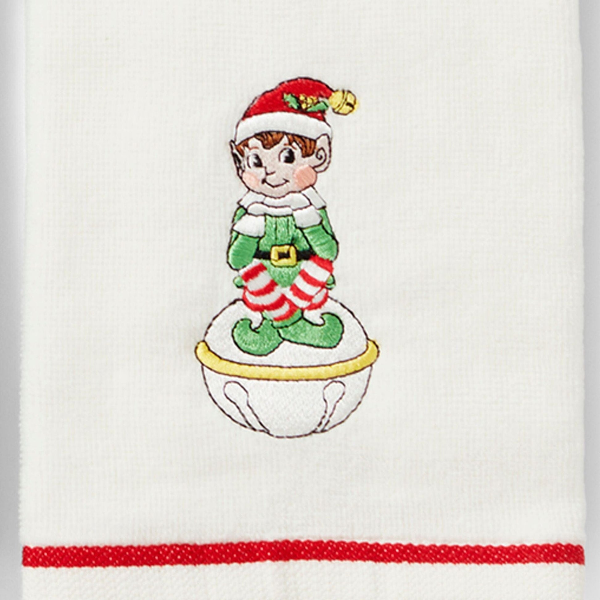 Add a touch of timeless holiday elegance to your home with the Lenox Holiday Elf, Santa & Penguin Kitchen Towels Set, sold as a set of 3. This 3-piece set features a playful mix of embroidered Christmas favorites - Santa carrying his gift sack, a joyful elf sitting on top of a bell ornament, and a dapper penguin on ice skates. Two hand towels come in a classic Christmas green with bright red trim, while the third comes in a crisp winter white with a coordinating red border. Each dish towel measures 18”x28” and is made from 100% cotton for excellent absorbency and long-lasting use. Whether gifted or displayed in your own home, these tea towels are sure to make a charming addition to any kitchen this holiday season. . Easy to care for, machine washable.
