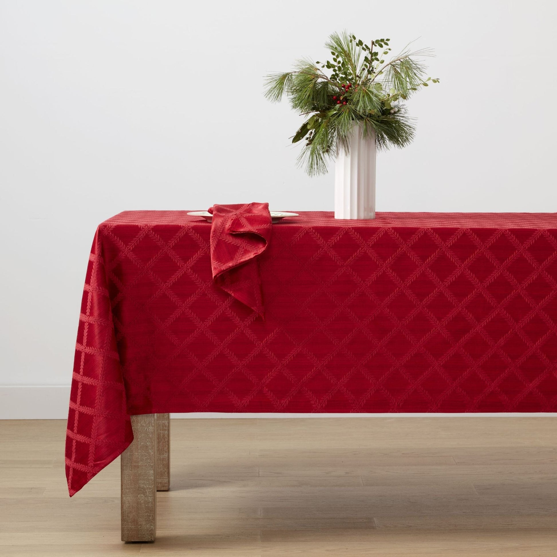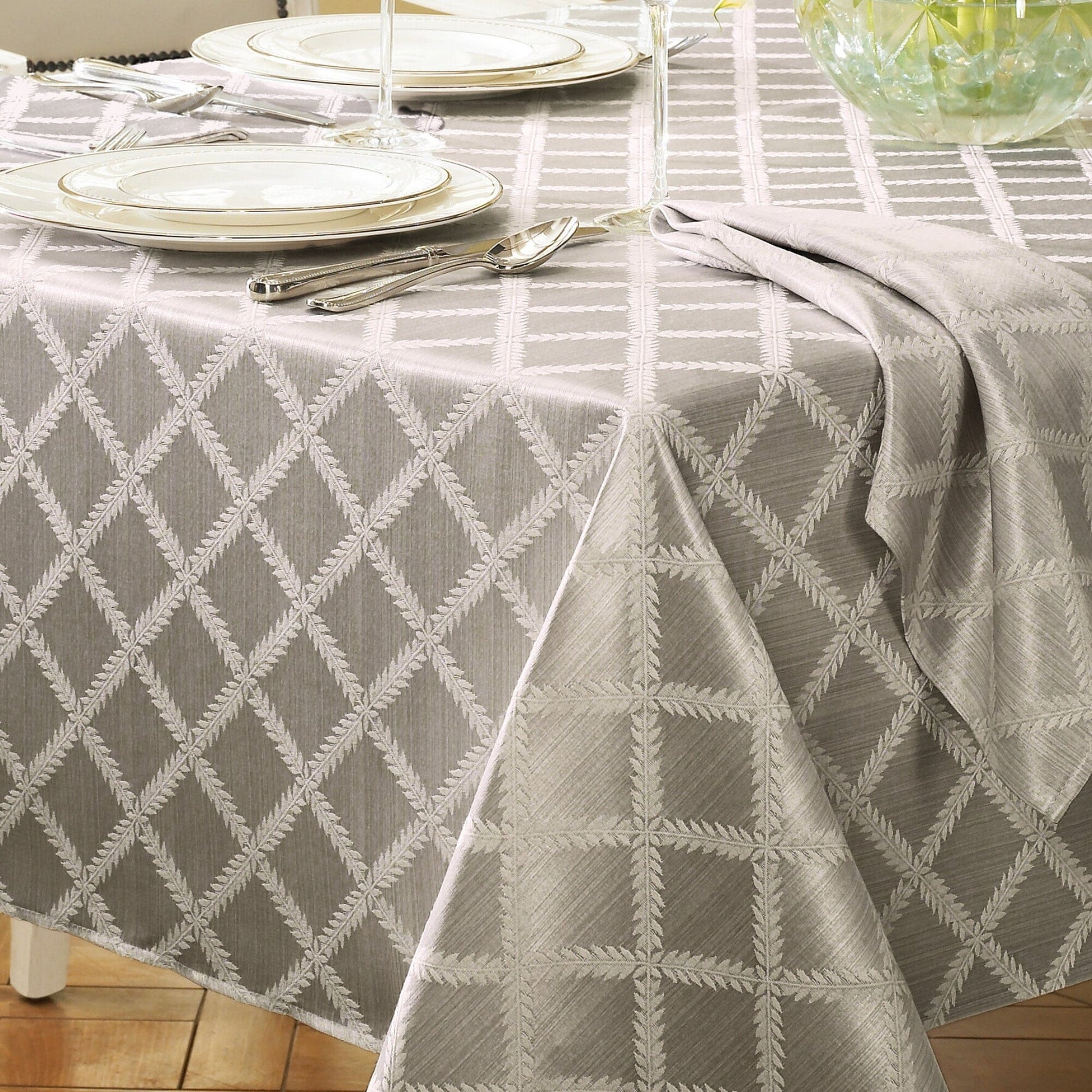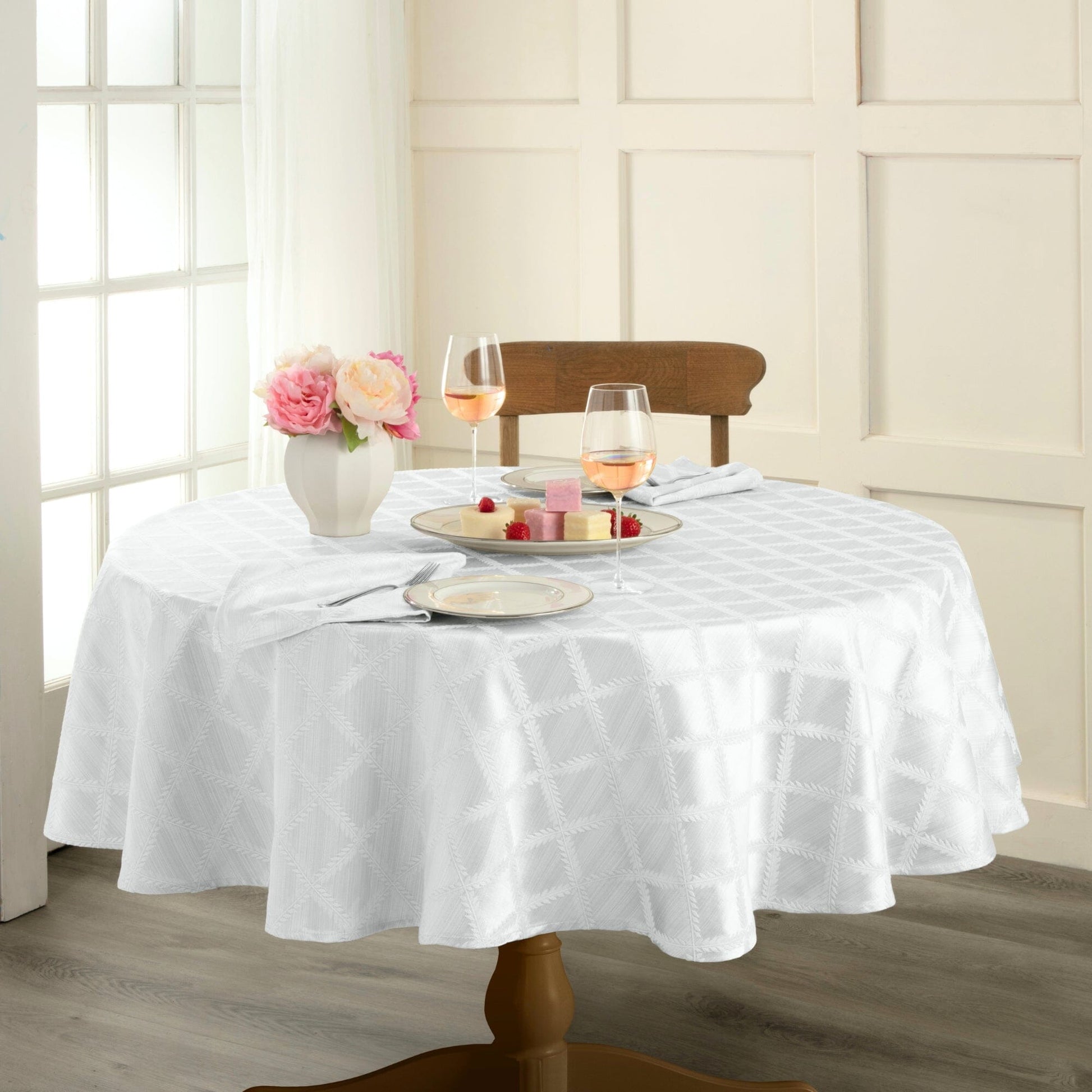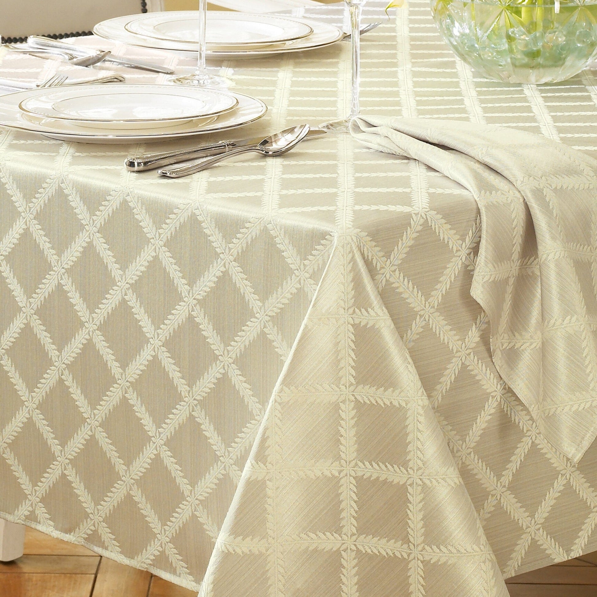 Elevate your dining experience with the timeless elegance of the Lenox Laurel Leaf Tablecloth. Featuring graceful laurel leaf garlands woven into a classic striped damask background, this sophisticated tablecloth adds texture, depth, and refined style to any table setting. Whether you're hosting a formal dinner or enjoying a casual meal, its subtle pattern and elegant finish create a beautifully polished look. Crafted from a durable cotton/polyester blend, this tablecloth offers the soft hand of cotton with the wrinkle-resistance and easy care of polyester. It's machine washable, making it perfect for both everyday use and special occasions. Available in a variety of colors and sizes to suit round, oval, or rectangular tables. Finish your tablescape with coordinating Laurel Leaf placemats, napkins, and table runners—sold separately for a perfectly coordinated and welcoming dining experience.