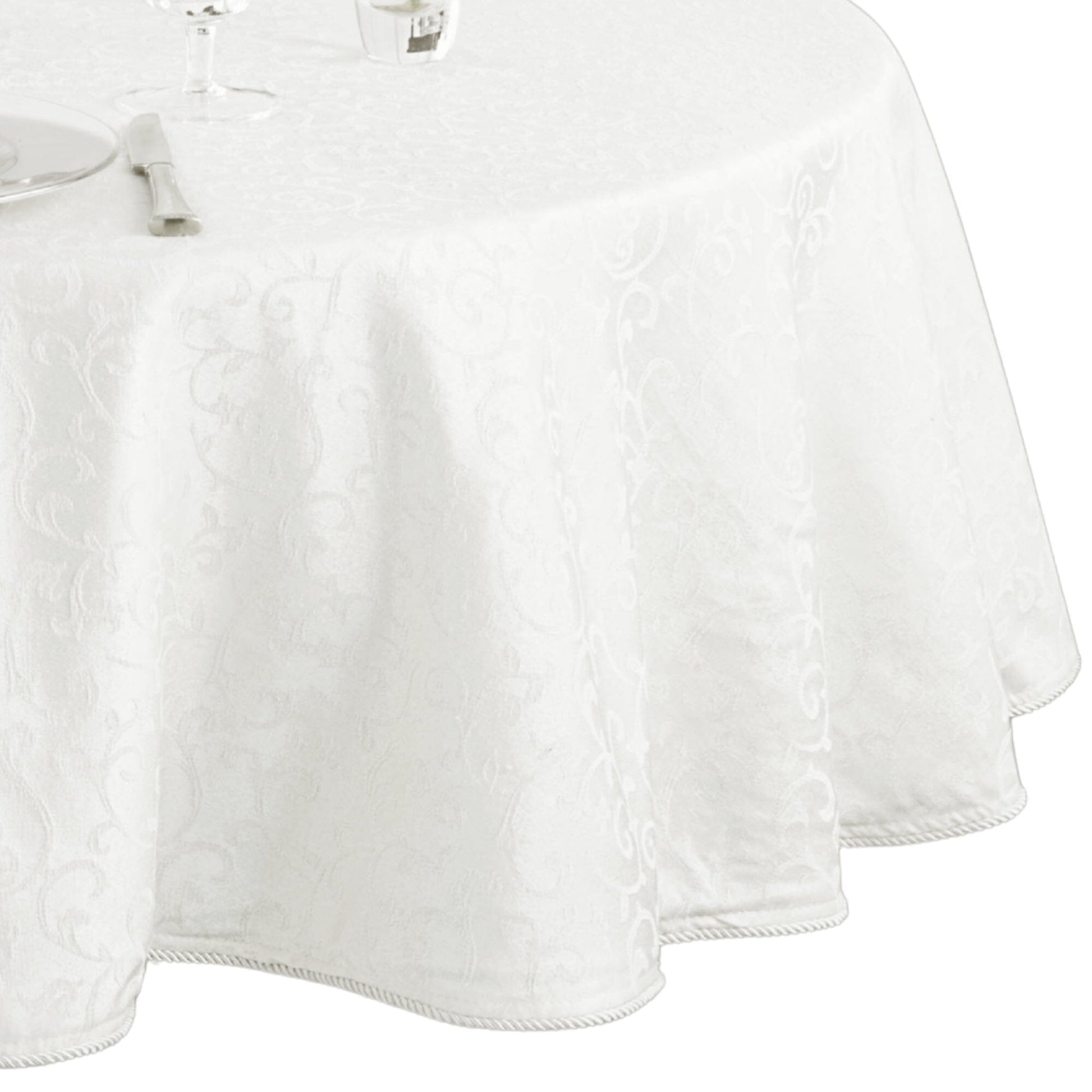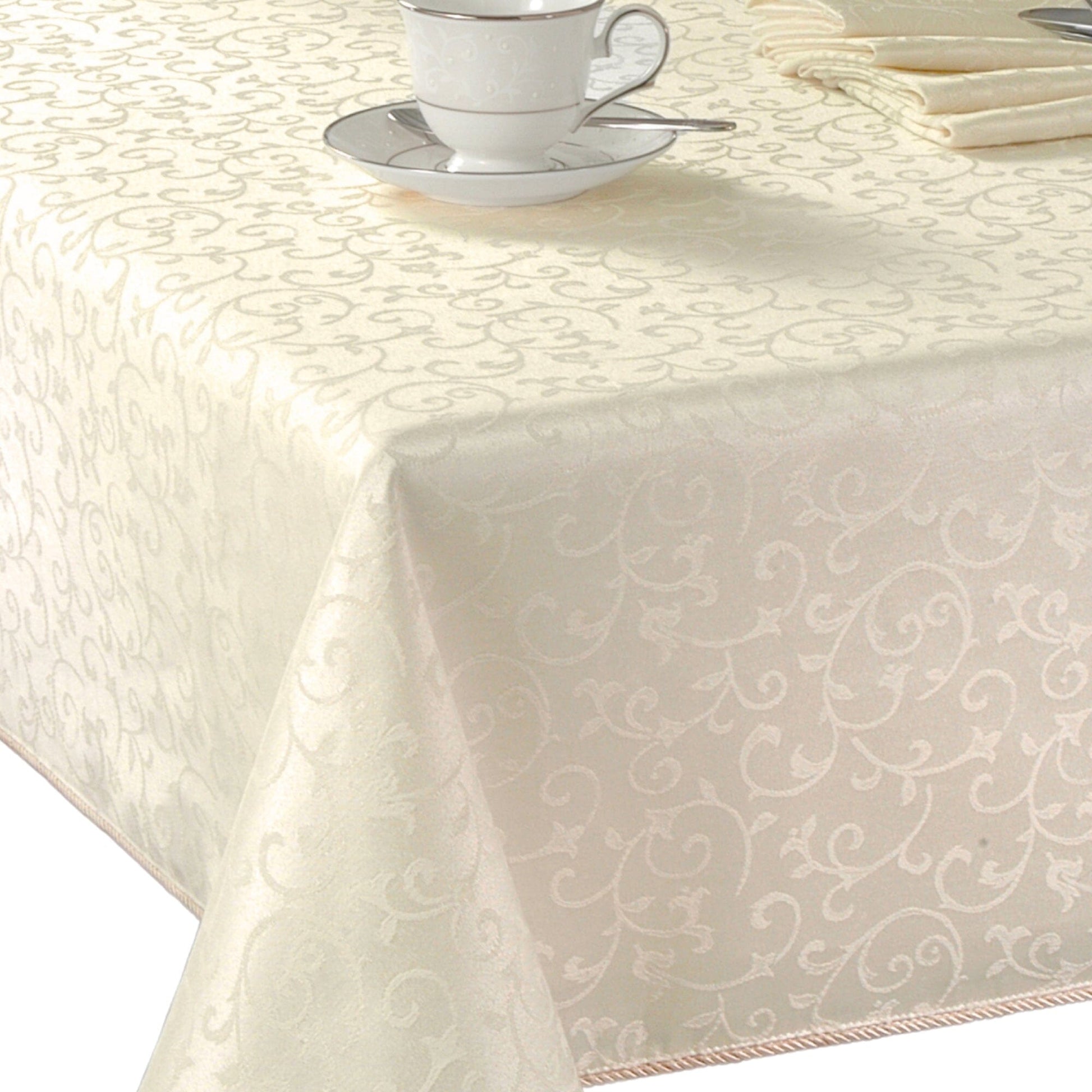 Delicate Damask Scroll Design: Features an intricate, tone-on-tone scroll pattern with a lustrous finish and a refined corded rib hem for added elegance.